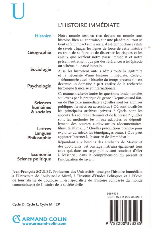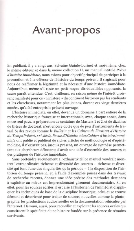 L'histoire immédiate. Histographie, sources et méthodes, Collection U, Armand Colin, 2009, 248p.